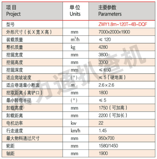 120型煤礦用防爆扒渣機技術參數
